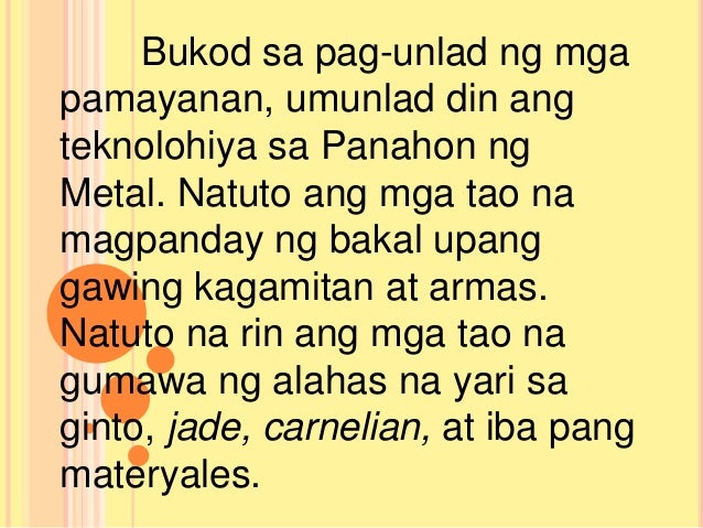 Una ay ang ebolusyon o sapientization ito ang mga pagbabagong naganap sa aspetong biyolohikal ng tao hanggang sa makamit ang katalinuhang naghiwalay sa kanya sa mga hayop. Please follow and like us. Ang unang natutuhang gamitin na metal ng mga sinaunang tao ay ang tanso o copperSa pamamagitan ng pag-iinit ng copper ore gamit ang ulingnakaproseso ang mga unang tao ng metal na tansoDahil hindi pa laganap ang pagproseso ng copper oreang madalas nilang gawin ay ang mga mamahaling bagay tulad ng alahas at kagamitang pandigmaUna nilang natutuhan ang pagproseso ng copper ore sa.