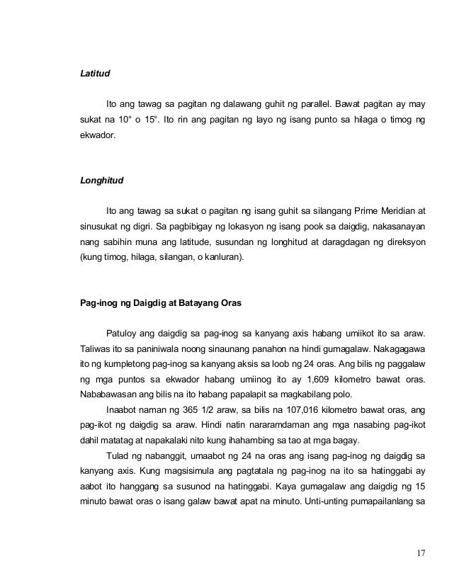 Upang masukat ang kinaroroonan ng isang lugar naglagay ang tao ng mga kathang-isip na guhit sa mundo. Maikling kuwento2Saang lugar nangyari ang Alamat ng Kanlaon. Nagsisimula ito sa magkabilang dulo ng mga polo na may tawag na Timog Polo sa bandang itaas at Hilagang Polo sa bandang ibaba.