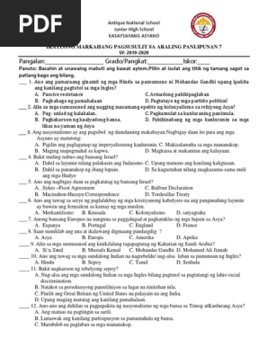 Dahil sa pananakop ng ibang lupainB. Sa kagustuhang magsama-sama muli ng mga hudyo8. ADahil sa layuning lumakas ang Judaism BSa kagustuhang magsama-samang muli ng mga Hudyo CUpang matamo ang kanilang kaligtasan DDahil sa pananakop ng ibang lupain TABLE OF SPECIFICATION SUBJECT.