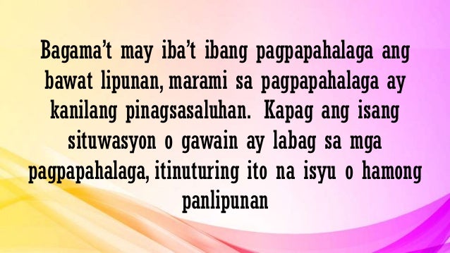 Ang bawat estado ay mayroong ibat-ibang pamahalaan na nagbibigay ng hiwalay na limitasyon at sakop. KULTURA Anderson at Taylor 2007 - ayon sa kanila ang kultura ay isang kumplikadong sistema ng ugnayan na nagbibigay-kahulugan sa paraan ng pamumuhay sa isang grupong panlipunan o isang lipunan sa kabuuan - sa isang lipunan binibigyang-katwiran ng kultura ang maganda sa hindi ang tama sa mali at ang mabuti sa masama 32. Mga Isyung Panlipunan.
