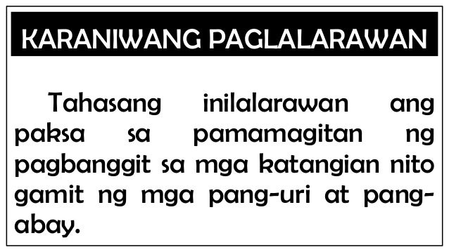 Tila ang nag-iisang paraan na mayroon tayo upang maintindihan sa pamamagitan ng pagsuri ng sarili na kung ano ang isip natin ay sa pamamagitan ng pagkunsidera sa ibat ibang partikular na mga diwa damdamin pasya at iba pang pangyayari sa ating isip ie. Ano ang halaga ng paglalarawang ito sa. Kung masining ang paglalarawan ano- anong tayutay ang ginamit sa paglalarawan.