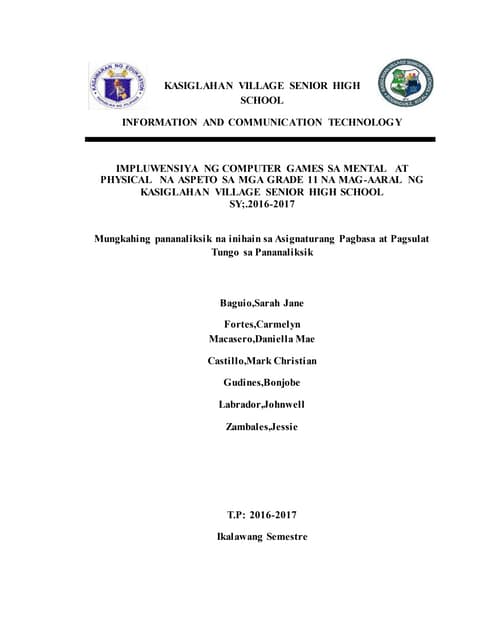 Babae muntik mamatay pagkatapos kumain ng watermelon na iniwan sa ref ng dalawang araw. Paglalaro ng bata nakakatulong sa development ng kanilang emosyon. May kagaspangan ang mga salita at maaaring may ibat ibang anyo gaya ng likas at likha Komunikasyon sa Akademikong Filipino Rodrigo 2009-o islang ay ang di-pamantayang paggamit ng mga salita sa isang wika ng isang partikular na grupo ng lipunan.